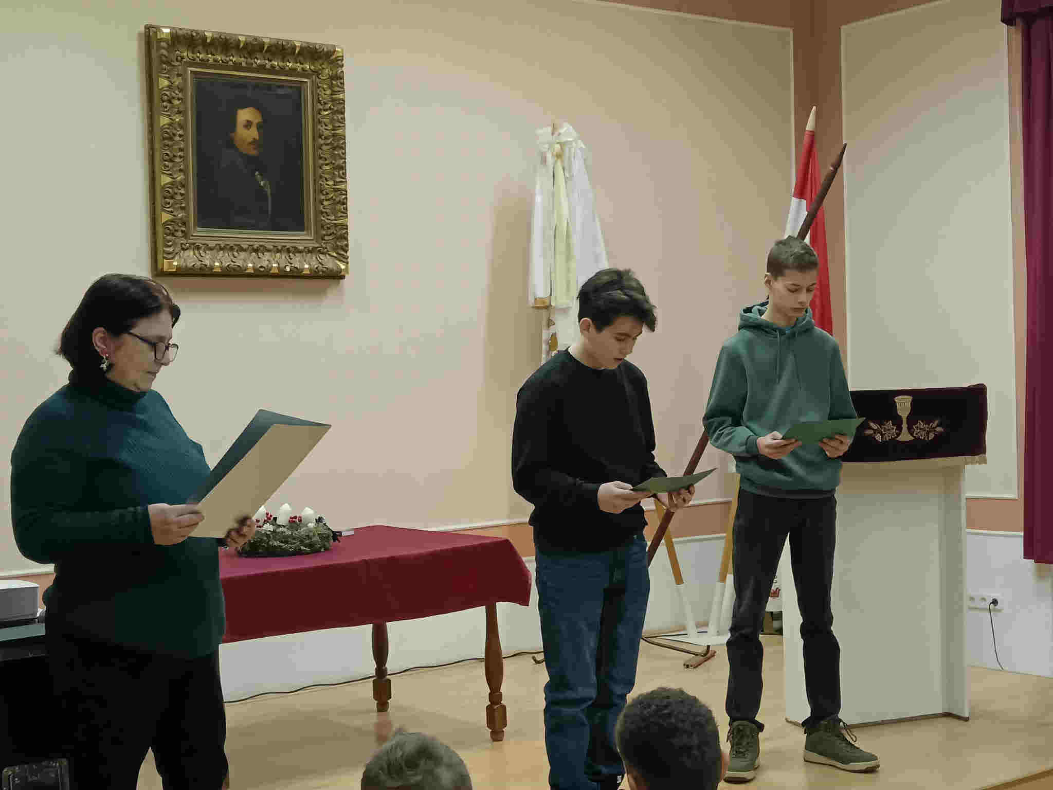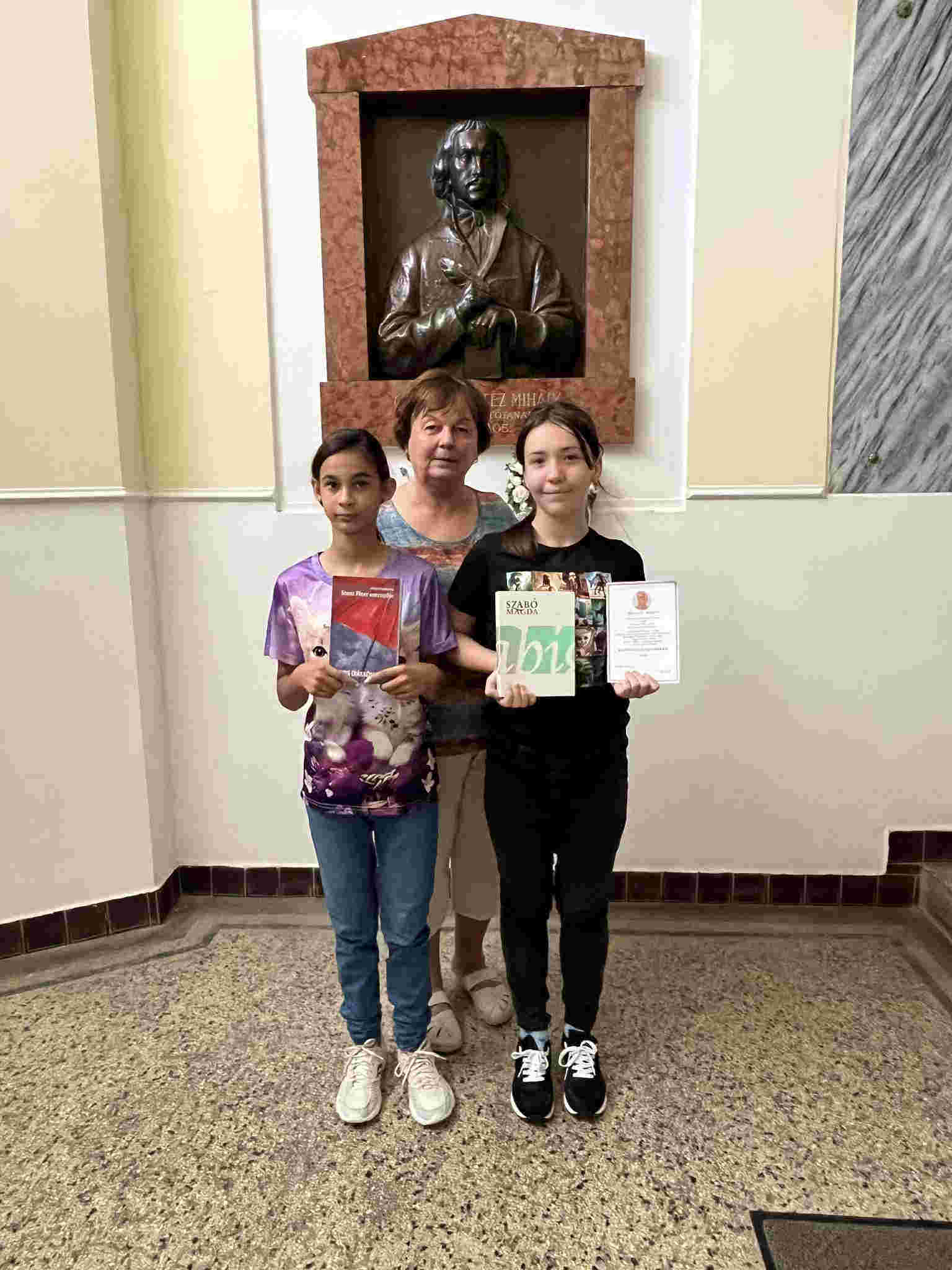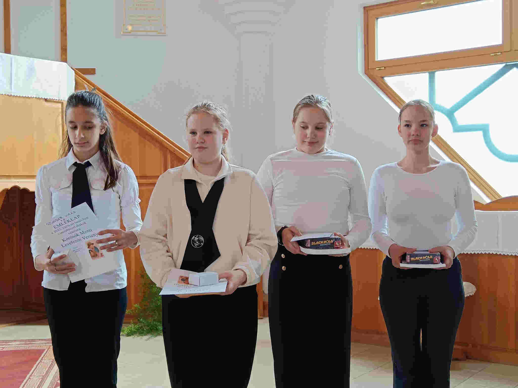 Horváth Ketrin és Pálinkás Rebeka 6. osztályos valamint Pálfy Hanga Boróka 8. osztályos tanulók oklevelet és jutalomkönyveket vehettek át.