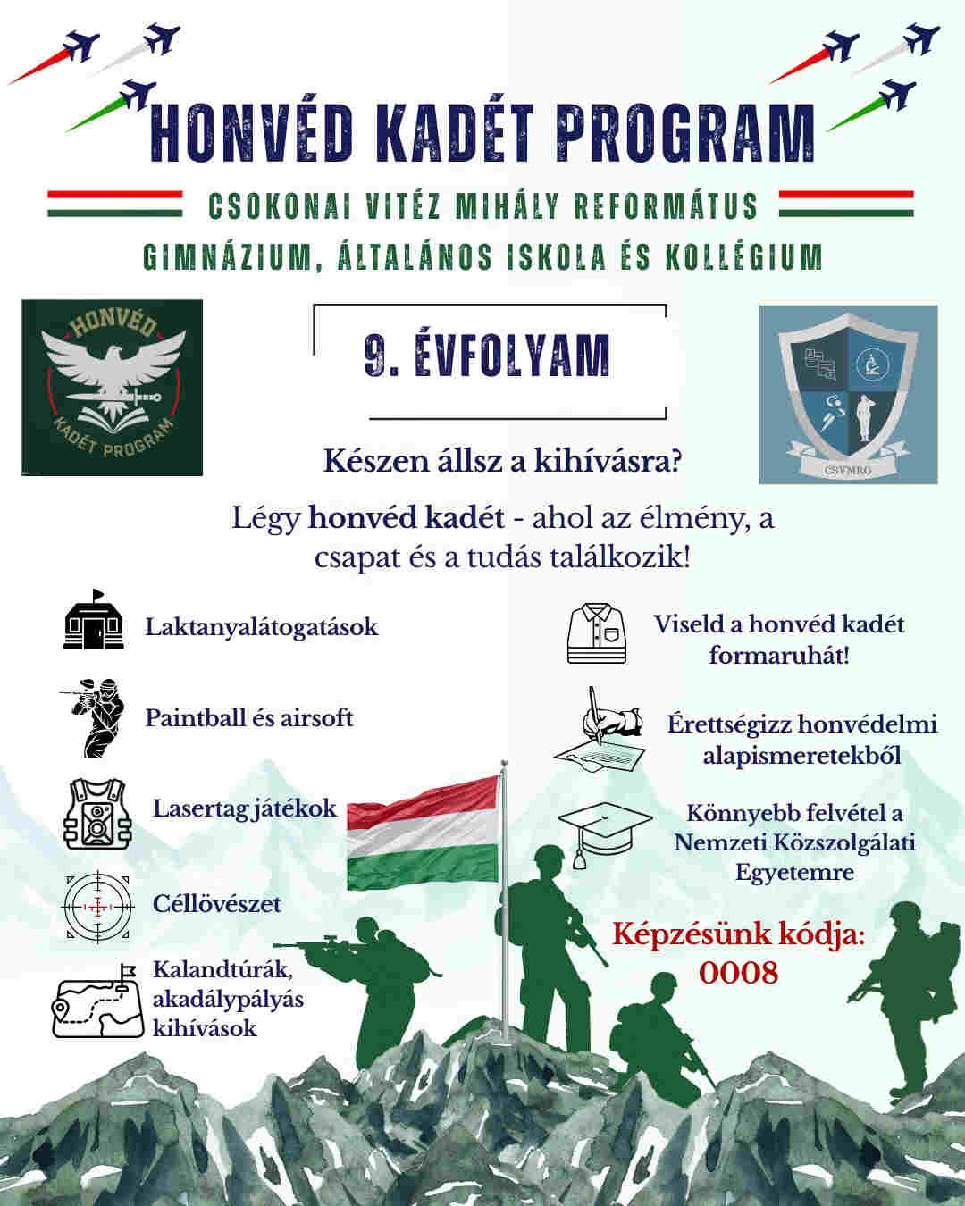 Iskolánkban idén ősszel először elindul a honvéd kadét program, amelyre már most nagy izgalommal készülünk!